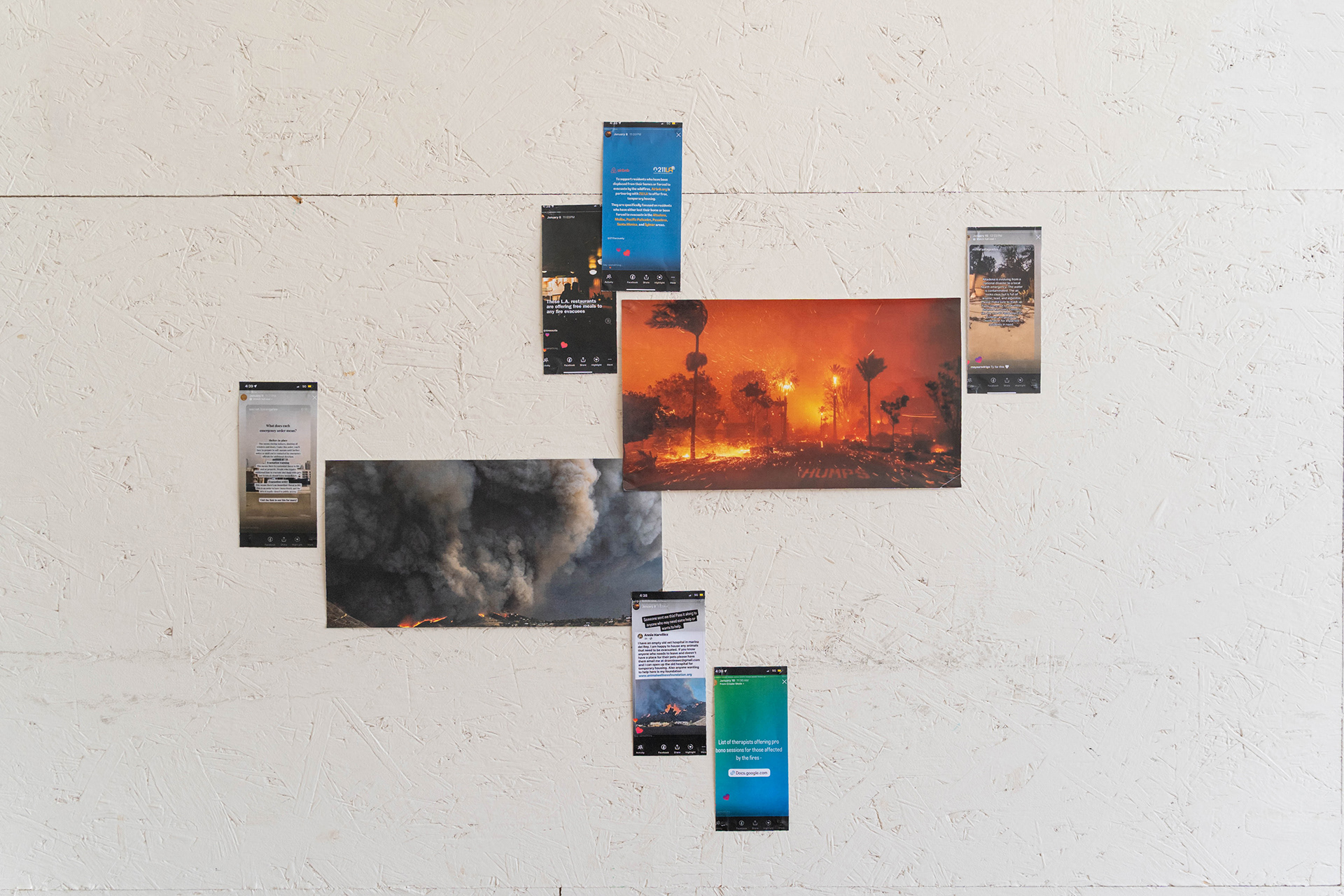This multimedia artwork reflects on how we witness disaster, focusing on the Los Angeles Wildfires of January 2025. It's a combination of news article photographs, social media story screenshots, and audio snippets of a conversation with one of my sisters on the topic.