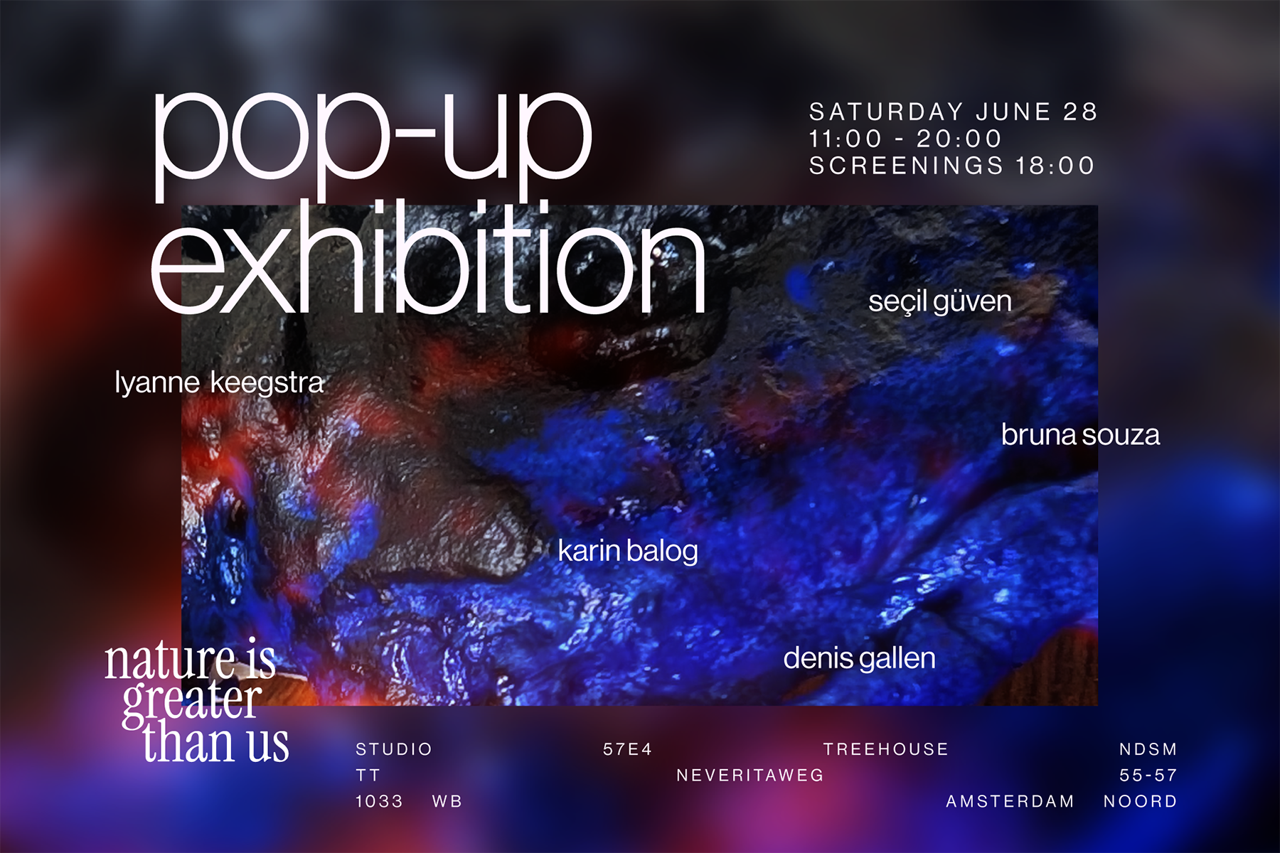 Join us for the second project recap of Nature is Greater Than Us, where visual artists Bruna Souza, Karin Balog, Denis Gallen and Seçil Güven present powerful new works responding to the devastating impacts of Brazilian floods, tsunami warning systems, and Dutch storms. In addition to the mixed media exhibition, artists Karin Balog and Lyanne will screen their short films, offering cinematic reflections on disaster, memory, and resilience.